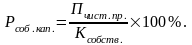 Рентабельность собственного капитала – коэффициент, характеризующий отдачу собственного капитала. Данный показатель зависит от величины заемных средств предприятия.