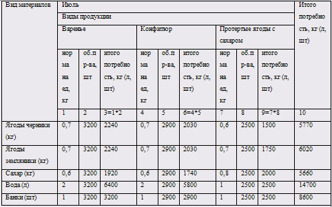 2.4 Составление калькуляции по видам продукции на предприятии "Ягодка"