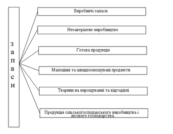 Спочатку запаси надходять на підприємство у вигляді сировини, матеріалів і комплектуючих виробів, призначених для виробництва, а також товарів, придбаних для перепродажу. Потрапляючи у виробничий процес, вони переходять до категорії незавершеного виробництва, після чого запаси стають готовою продукцією. Крім того, для забезпечення виробництва підприємство утворює і запаси малоцінних і швидкозношуваних предметів [9, 91-92].