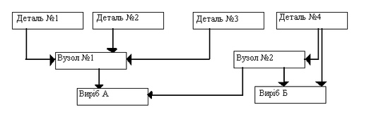 Витрачання матеріалів на виготовлення виробу вцілому розраховують на основі по-детальних та по-вузлових норм витрачання та норм застосування деталей у вузлах та збірних з’єднаннях, а останніх – у виробах (рис.1.4) [9, 101].