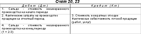 Счета 20 и 23 – калькуляционные, на них исчисляется фактическая себестоимость продукции (работ, услуг) основного и вспомогательного производств.