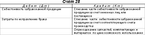 Учет потерь от брака ведется на активном счете 28 «Брак в производстве». Аналитический учет потерь от брака ведется в каждом цехе, по видам забракованной продукции и статьям расходов.