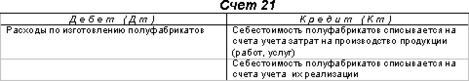 Для получения информации о наличии и движении полуфабрикатов собственного производства организации могут использовать активный счет 21 «Полуфабрикаты собственного производства». По дебету названного счета отражаются расходы по изготовлению полуфабрикатов, по кредиту – списание полуфабрикатов в зависимости от направления их использования.