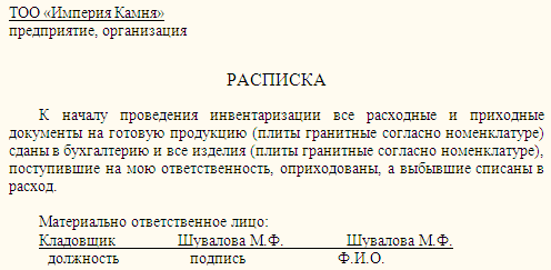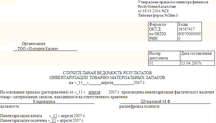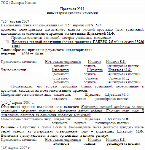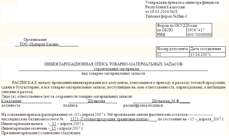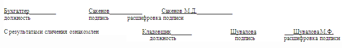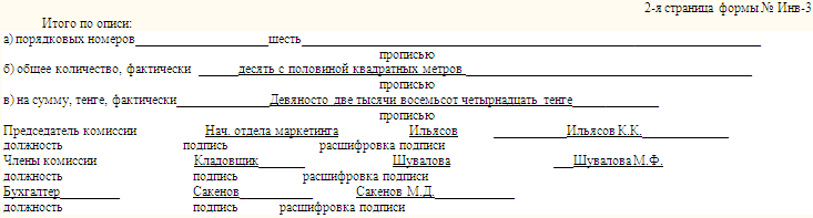 ри инвентаризации установлено следующее: