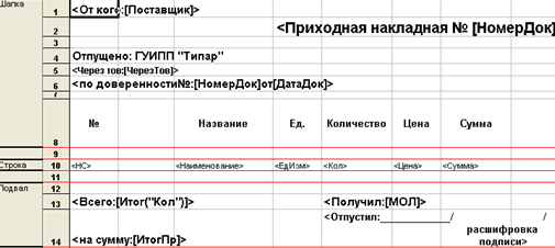 В поле Наименование пишем формулу Товар(), в поле Цена – Цена (). Под таблицей добавим текст с формулой для вычисления суммы по колонке Итог("Кол"), Итог("Сумма").