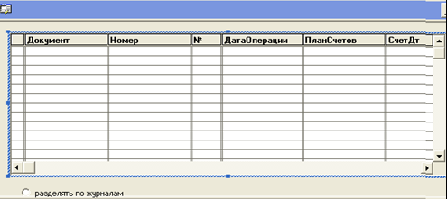 Добавим в форму переключатель. Заголовок - "разделять по журналам", Идентификатор –"ФлагПоЖурналам", Формула – ПоЖурналам();