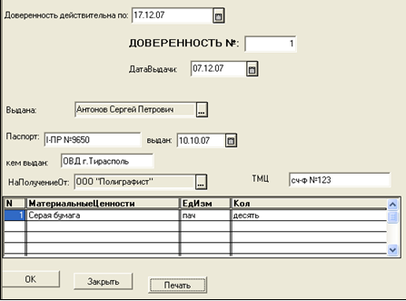 В связи с вышесказанным, предлагается использовать разработанную в данной курсовой работе простейшую конфигурацию "Поставщики и подрядчики". Но и она может быть доработана. Так можно еще добавить справочник лиц, на которых будут выписываться доверенности.