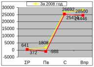 ВЫручка от реализации продукции, которая представляет собой показатель масштаба полученных денежных средств от всех видов деятельности предприятия за период 2008 – 2009 гг. снизилась на 4074 тыс.руб. Это объясняется снижением объемов ремонта автодорог. Таким образом, в целом за год, оказано услуг на 14,3% меньше.