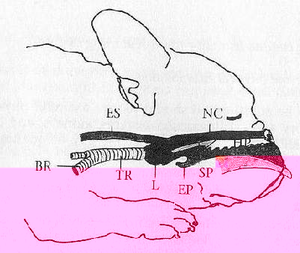 Особого внимания заслуживает расположение мягкого неба относительно входа в глотку.