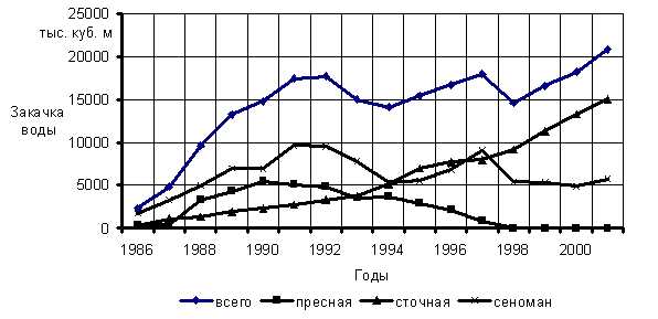 Рис. 4 - Изменение объема закачки воды по годам