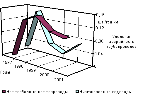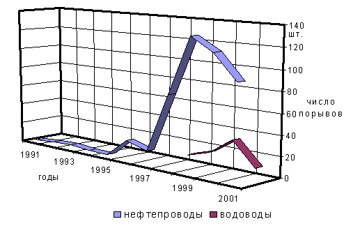 С 1991 по 2001 г.г. на Ватьеганском и Южно-Ягунском месторождениях произошло 455 порывов нефтепроводов, а с 1997 по 2001 г.г. - 71 порыв водоводов.
