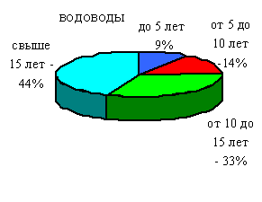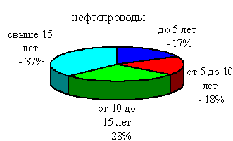 Свыше 40 % всех трубопроводов находится в эксплуатации более 15 лет, а 30 % - более 10 лет (рис. 10).