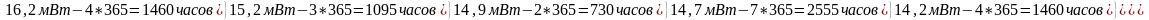 =14.7*7+16.2*4+14.2*4+15.2*3+14.9*2+13.2*4=352.7 МВт*час