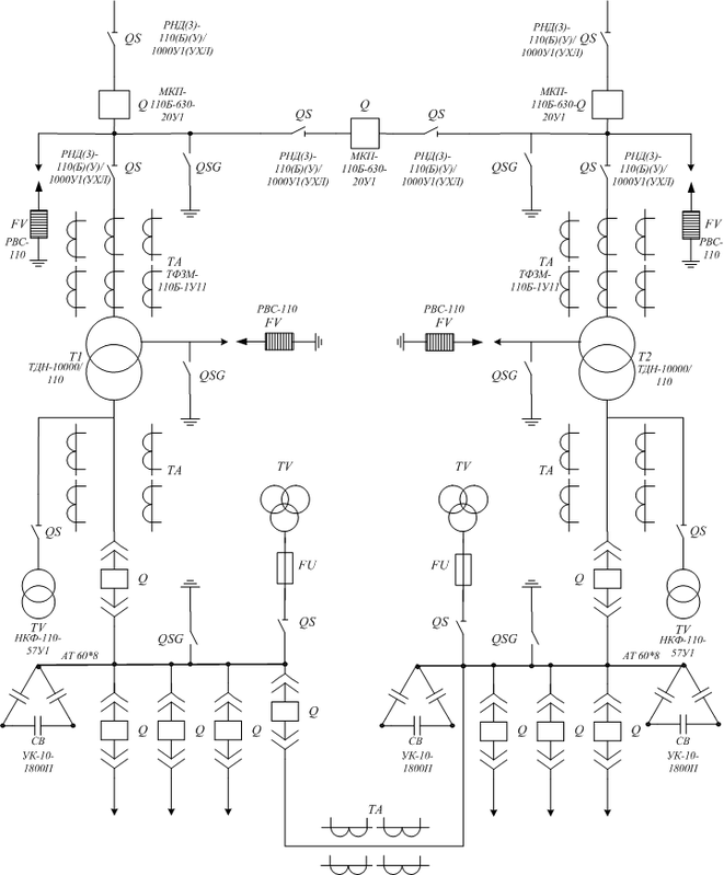 4.1 С учетом категории потребителей намечаем ГПП горно-обогатительного комбината с двумя трансформаторами.