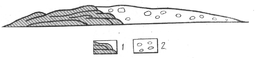 Рис. 1 Схематический разрез друмлина: / — коренная скала («бараний лоб»); 2 — морена