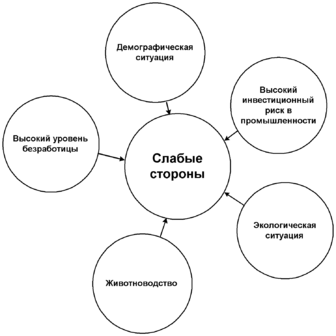 Рисунок 2.2 – Результат SWOT-анализа: слабые стороны социально-экономического положения Орловской области