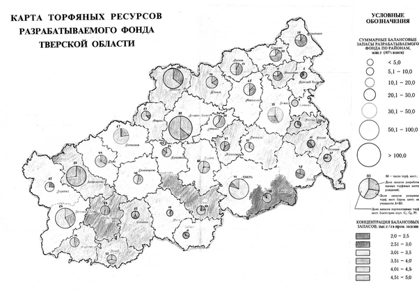 Обеспечение торфяной промышленности, сельского хозяйства органическим сырьем, получение разнообразной продукции на основе торфа связывается с разрабатываемым торфяным фондом. Наибольшие запасы торфа сосредоточены в Вышневолоцком, Калининском, Бологовском, Андреапольском, Западнодвинском районе и Бежецком районе.