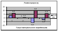 Як бачимо темпи приросту складових матеріального виробництва у 2005 році дещо має негативні тенденції розвитку, тоді як у 2006 році ситуація помітно покращується, за винятком сільського господарства.