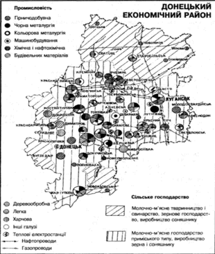 Рис. 9. – Донецький економічний район (Площа – 53,2 тис. км2 (8,8% території України), склад – Донецька і Луганська області)