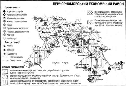 Рис. 1. – Причорноморський економічний район (Площа – 113,4 тис. км2. склад – Автономна Республіка Крим, Миколаївська, Одеська і Херсонська області)