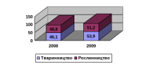 Відбулися суттєві зміни в структурі виробництва. На провідне місце вийшла рослинницька галузь, частка якої у загальному виробництві валової продукції у 2009 році склала 51,2 відсотка.