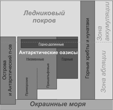 Рис. 2. Классификационная схема антарктических оазисов (Сократова, 2007)