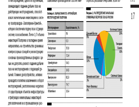 В районах с развитой газовой инфраструктурой сосредоточено около 51% разведанных запасов газа. Перспективное для Газпрома развитие добычи газа связано, прежде всего, с освоением газовых ресурсов полуострова Ямал, Надым-Пур-Тазовского района и шельфа арктических морей. В Восточной Сибири и на Дальнем Востоке разведано свыше 2,7 трлн куб. м запасов газа, из которых разрабатывается только 7,4%. Газпром ведет добычу газа, конденсата и нефти из недр на 72 газовых и газовоконденсатных месторождениях, 3 из которых являются базовыми — Уренгойское, Ямбургское и Медвежье. Более 70% газа добывается компанией на месторождениях, находящихся в стадии падающей добычи 3 (табл.2).