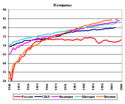 Сейчас разница очень большая. Если она сохранится, это будет означать, что родившийся сегодня в России мальчик проживет, в среднем, на 15 лет меньше, чем его европейский, американский или японский сверстник. У женщин ситуация немного лучше, но качественно — те же самые "ножницы", просто их раствор не такой большой.