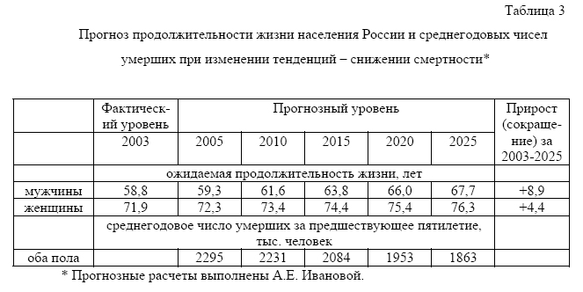 ПРИЛОЖЕНИЕ 3. Прогноз продолжительности жизни населения России