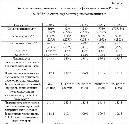 Большая роль отводится миграции в демографическом развитии. Если нельзя добиться перехода к положительному естественному приросту или к смене естественной убыли естественным приростом, то единственный ресурс, который остается — иммиграционный.