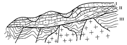І - чохол сучасних відкладень; ІІ - складчаста підстава; ІІІ - кристалічний фундамент