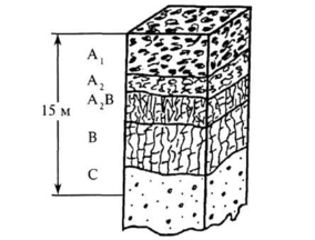 А1 - гумусово-аккумулятивный горизонт; А2 - елювіальний горизонт; А2В - елювіально-ілювіальний горизонт; В - ілювіальный горизонт; С - материнська порода