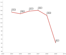 Рис. 4. Динамика ВРП, % к предыдущему году (по состоянию на 2009 год).