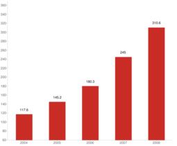 Рис. 3. Объем ВРП, млрд. руб. (по состоянию на 2008 год).