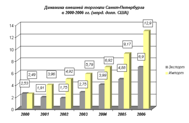 Рис. 6. Динамика внешней торговли Санкт-Петербурга в 2000-2006 гг.