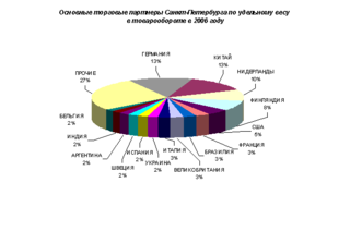 В 2006 году предприятия Санкт-Петербурга осуществляли торговлю со 180 странами (из них 10 - страны СНГ). Крупнейшие торговые партнеры Санкт-Петербурга – Германия, Китай, Нидерланды, Финляндия, США.