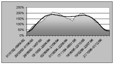 | Доходность ГКО | 166.0 | 278.4 | 106.3 | 147.3 | 141.3 | 89.7 | 144.9 | 67.6 | 42.2 | 32.8 | 28.3 | |||||||||||