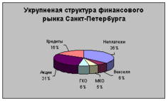 В середине апреля 1997 г. Министерство финансов зарегистрировало проспект эмиссии внешнего займа Администрации (Еврозайм) на сумму 300 млн. долларов. Заимствование на внешнем рынке (главным образом в США) позволит привлечь для финансирования бюджетных расходов средства под меньший процент и на больший срок по сравнению с условиями заимствования на внутреннем финансовом рынке. (Срок погашения – 18.06.2002г., доходность – 9,5%). За 6 лет в Санкт-Петербурге была создана развитая инфраструктура финансового рынка. В настоящее время в городе действуют 4 фондовые биржи, 104 коммерческих банка и более 400 финансовых и брокерских компаний. Финансовый рынок Санкт-Петербурга является вторым по масштабу региональным финансовым рынком России (после Москвы) и крупнейшим рынком субфедеральных государственных обязательств. В этой связи значительным успехом можно считать тот факт, что в начале 1997 года на биржах города была организована торговля облигациями муниципальных займов Москвы и Оренбурга, выпуск и обращение которых организованы по типу МКО. Это позволило привлечь на рынок города дополнительные финансовые средства, преимущественно региональных инвесторов. Характерной чертой финансового рынка Санкт-Петербурга является его высокая степень концентрации. Практически на всех его секторах (валютный рынок, рынок кредитов, депозитов, акций и облигаций) можно выделить 4-5 наиболее активно действующих операторов, на которых приходится основная доля оборота. Кроме того, стоит отметить, что на финансовом рынке сложилась устойчивая специализация торговых площадок. Так, торговля государственными и муниципальными облигациями (за исключением муниципального облигационного займа) ведется на биржевых площадках, а основной оборот по валюте, корпоративным бумагам и векселям приходится на внебиржевой рынок.