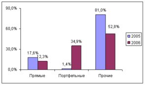 Общий объем иностранных инвестиций в экономику Санкт-Петербурга в 2006 году вырос по сравнению с прошлым годом в 3,7 раз и достиг максимального за последние годы значения. По сравнению с 2005 годом изменилась структура иностранных инвестиций. В 2,6 раза увеличились прямые инвестиции, которые достигли 643,4 млн. долл. Портфельные инвестиции резко увеличились, почти в 91 раз, однако основная часть поступивших инвестиций (52,8%) по-прежнему приходится на инвестиции из разряда «прочие», то есть различные кредиты.
