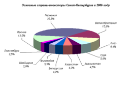 Доля Санкт-Петербурга в общем объеме иностранных инвестиций, поступивших в экономику России в 2006 году, составила 9,5% (в 2005 году – 2,64%; в 2004 – 2,4%).