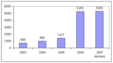 Рис. 22. Динамика объема иностранных инвестиций в экономику Санкт-Петербурга в 2003 – 2006 гг., млн. долл. США.