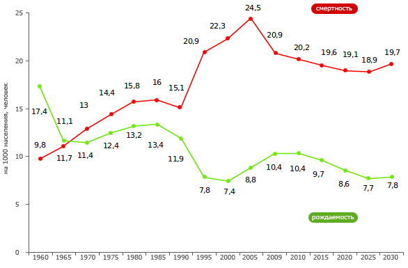Динамика рождаемости и смертности в Псковской области