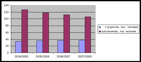 |   школьников, тыс человек  |    126,8  |    118,5  |    112,1  |    106,7  |    102,8  |