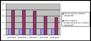 |   Число средних профессиональных учебных заведений*  |    20  |    20  |    19  |    15  |    14  |