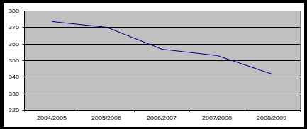 |   Год  |    2004/2005  |    2005/2006  |    2006/2007  |    2007/2008  |    2008/2009  |