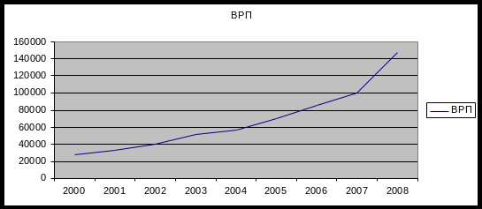 |   ВРП  |    28115,7  |    32274,3  |    40994,9  |    50659,8  |    56710,9  |    70127,6  |    85112,1  |    100359,2  |    147062,4  |