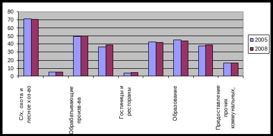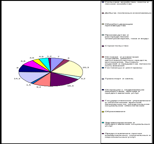 |   Оптовая и розничная торговля; ремонт автотранспортных средств, мотоциклов, бытовых изделий и предметов личного пользования  |    Гостиницы и рестораны  |    Транспорт и связь  |    Операции с недвижимым имуществом, аренда и предоставление услуг  |    Государственное управление и обеспечение военной безопасности; обязательное социальное обеспечение  |    Образование  |    Здравоохранение и предоставление социальных услуг  |    Предоставление прочих коммунальных, социальных и персональных услуг  |