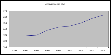 |   Астраханская обл.  |    428,4  |    428,7  |    429,8  |    438  |    443,1  |    445  |    449,9  |    457,9  |    463  |