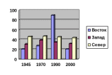 Рис. 4.1 Розподіл виробництва промислової продукції за регіонами у 1945-2000 роках