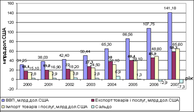 Рис. 1.1 Динаміка зовнішньоекономічної діяльності України за 2000-2007 рр.